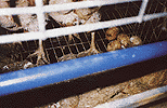 furent délivrées de ce cruel type d'élevage, elles n'avaient plus de plumes.
